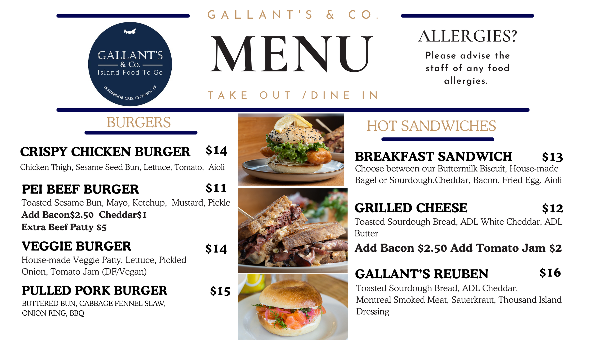 Gallant’s & Co. Island Food To Go is located on the outskirts of town at 18 Superior Crescent. This accessible drop in location is perfect for a quick lunch from the à la carte menu or a simple choice from the stocked Grab & Go fridge and freezer. This kitchen is where all the magic happens and is our home base for all of our catering and off site vending opportunities. It just so happens to be en route to most major beaches so be sure to take advantage of the prime opportunity to stop in for all kinds of day trip or beach snacks!